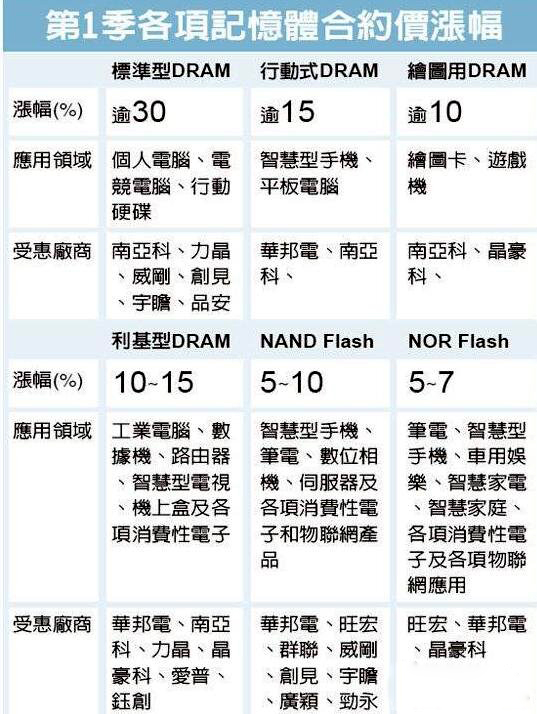 今年存儲(chǔ)芯片缺貨效應(yīng)持續(xù)擴(kuò)大,繼DRAM、儲(chǔ)存型快閃存儲(chǔ)(NAND Flash)在淡季飆出歷年最大漲幅后,編碼型快閃存儲(chǔ)(NOR Flash)也在睽違四年多來初次提價(jià),第一季度調(diào)漲5~7%不等,下季漲幅更大,估計(jì)漲幅逾10%?!?br />